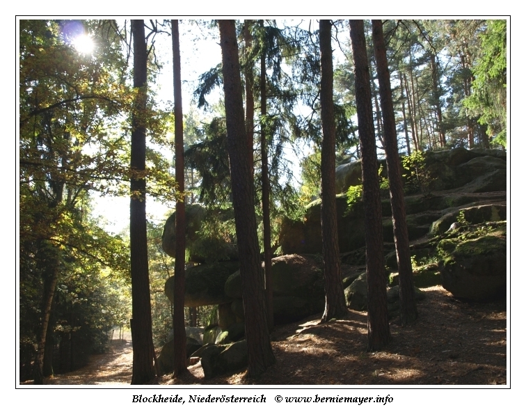 Der Naturpark Blockheide bei Gmünd im oberen Waldviertel bietet sich optimal für einen Tagesausflug an. Abgesehen davon dass das Waldviertel mit den sanften Hügeln, Teichen, Mooren, Wäldern & Wiesen einer der bezauberndsten Winkel Österreichs ist, ist der Naturpark Blockheide mit seinen Wackelsteinen immer einen Ausflug wert. Je nach Zeit & Lust gibt es verschieden lange "Themen"-Wege durch den Naturpark. Die rot markierte Granit-kul-tour mit ca. 2,9km, die blau markierte Mytho-logie-tour (auf der man alle Wackelsteine und die mystischen Mondteiche besucht) mit 3,5km, die grün markierte Landschafts-kul-tour mit 2,8km und den gelb markierten Marien-käfer-weg mit 5,6km. Vom Aussichtsturm beim Infozentrum hat man einen wunderbaren Rundblick über die ganze Region bis weit nach Tschechien.